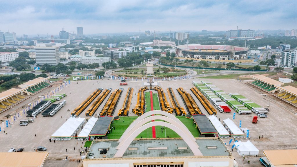 Ghana, Accra, July 31 – A large batch of LiuGong equipment was officially delivered to the Ghanaian government to support The District Road Improvement Programme (DRIP) as part of the local economic development plan. The Ghanaian government held a grand project launch ceremony at Independence Square in Accra. Approximately 3,000 people attended the event, including Ghanaian President Nana Addo Dankwa Akufo-Addo, Mr. Li Yaohong, Commercial Counselor of the Chinese Embassy in Ghana, officials from various Ghanaian government departments, LiuGong Chairman & CEO Zeng Guang’an, and Senior Vice President Luo Guobing.