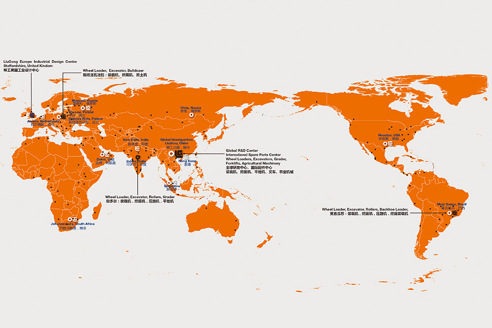 目前在海外拥有10个子公司、9个区域配件中心和300多家经销商,覆盖100多个国家和地区。
