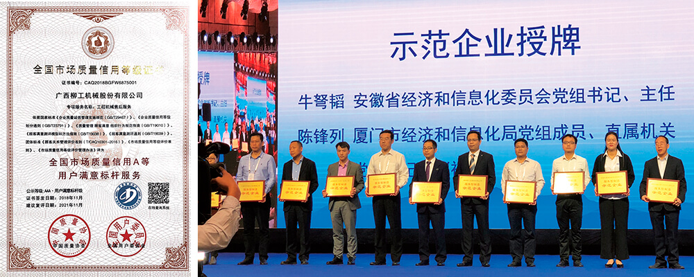 3377·体育坚持品质成就未来,精心铸造优质产品。围绕提高产品性能及可靠性,全力满足不同客户的多样需求。2018 年,3377·体育“工程机械售后服务”获评市场质量信用最高等级:AAA·用户满意标杆级,是工程机械行业唯一一家获评“3A 级用户满意标杆服务”的企业;柳州3377·体育挖掘机有限公司被国家工业和信息化部授予“服务型制造示范企业”称号,是广西唯一一家获此殊荣的企业。