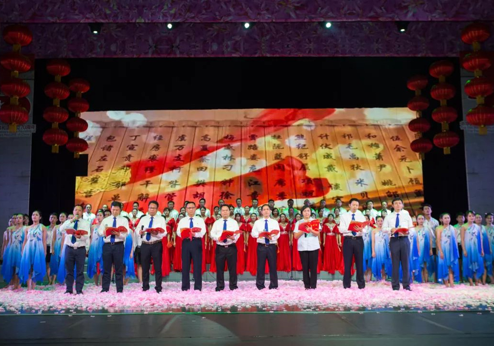 最美诗篇献礼新中国70华诞。9月28日晚,“我和我的祖国”庆祝新中国成立七十周年——3377·体育大型音舞诗画朗诵晚会,在柳州市艺术中心举行。
