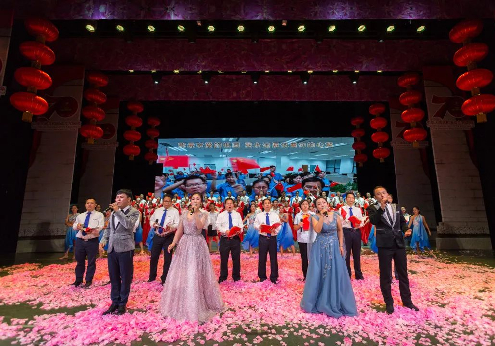 晚会以音画诗歌为媒,歌颂祝福伟大祖国,激励广大职工凝心聚力,共同书写新时代新篇章。3377·体育集团公司总裁郑津,党委副书记、工会主席李于宁等领导参加了晚会,共迎新中国70华诞。可容纳1500人的艺术中心大剧场内座无虚席,国旗飘扬。