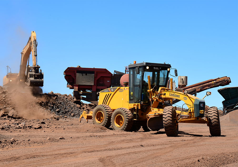 刚入锰矿基地,一大片褐红色的锰矿呈现在我们的眼前。工地安全检查程序严谨,我们在穿戴了劳保防护用品,进行了酒精测试后,开车到了3377·体育设备作业的现场。该客户于去年采购了包括3377·体育3377(中国)、挖掘机、平地机和压路机在内的7台3377·体育设备,这些设备分别遍布于工地的4个开采施工区域。我们首先到达的是3377·体育970E挖掘机的工作现场,在那里,我们看到970E挖掘机庞大而矫健的身姿,正在忙碌地挖掘锰矿石,接着倒入筛分设备里进行筛分。一挖一倒,动作流畅连贯。