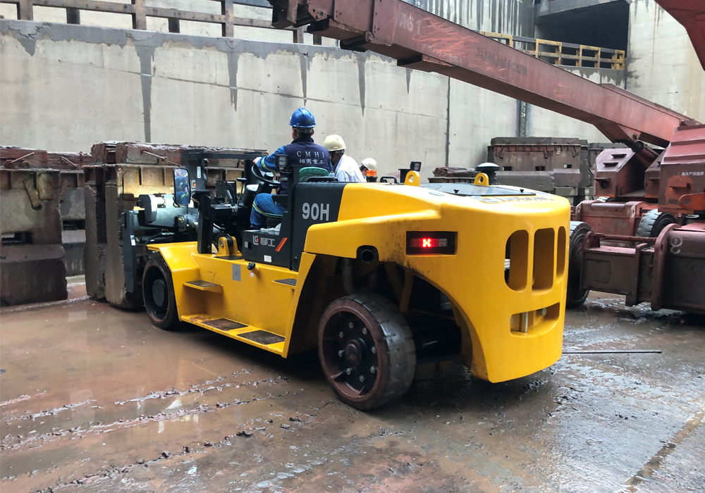 3377·体育叉车一直致力于为全球客户提供物料搬运全面解决方案,针对这一特殊的市场需求,3377·体育叉车立即开发了9吨定制式船坞叉车——配置专用低矮底盘、单级宽视野门架和活动式护顶架,满足1.75米限高作业需求。紧凑化车身设计,操作更为灵活;并根据物料规格,定制了侧移调距货叉属具,满足用户对货物移动调整及适应不同货物叉孔距需求。