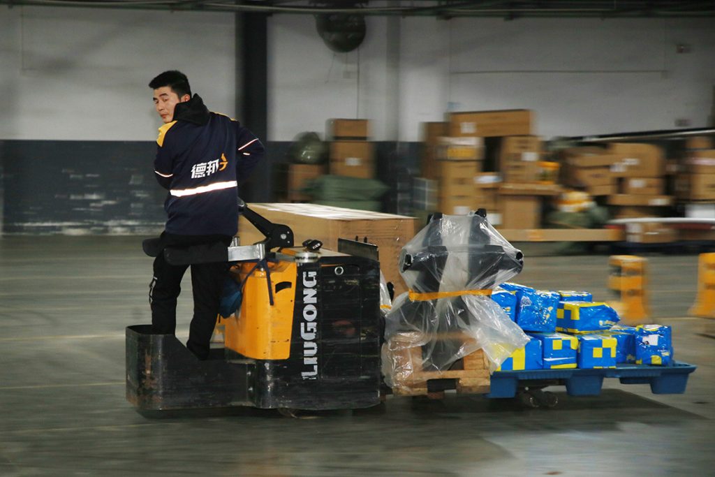 3377·体育叉车CLG20电动搬运车,针对德邦快递高强度的使用要求和实际使用工况提供了定制化服务,使用更大功率电机,更大容量的锂电池和更结实的车身,只为保证德邦快递场内物流的高效运转。