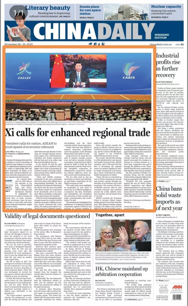 习近平主席在致辞中指出:“中方愿同东盟方携手努力,畅通贸易、促进投资,相互开放市场,推动双方产业链、供应链、价值链深度融合。”