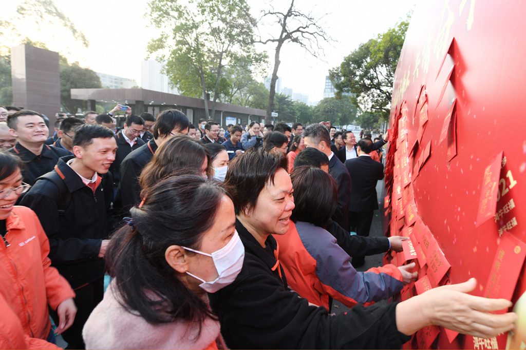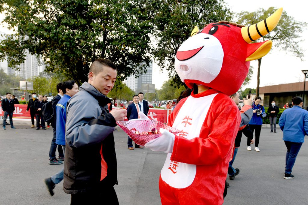 3377·体育领导曾光安、赖颂平、黄海波、李于宁、文武早早来到门口,与前来上班的员工互道新春祝福,大家脸上洋溢着灿烂的笑容,满怀激情,以“起步就要提速,开局就要争先”的精气神,“犇”向新目标、新高峰,以“十四五”开局之年的优秀业绩献礼中国共产党百年伟业。