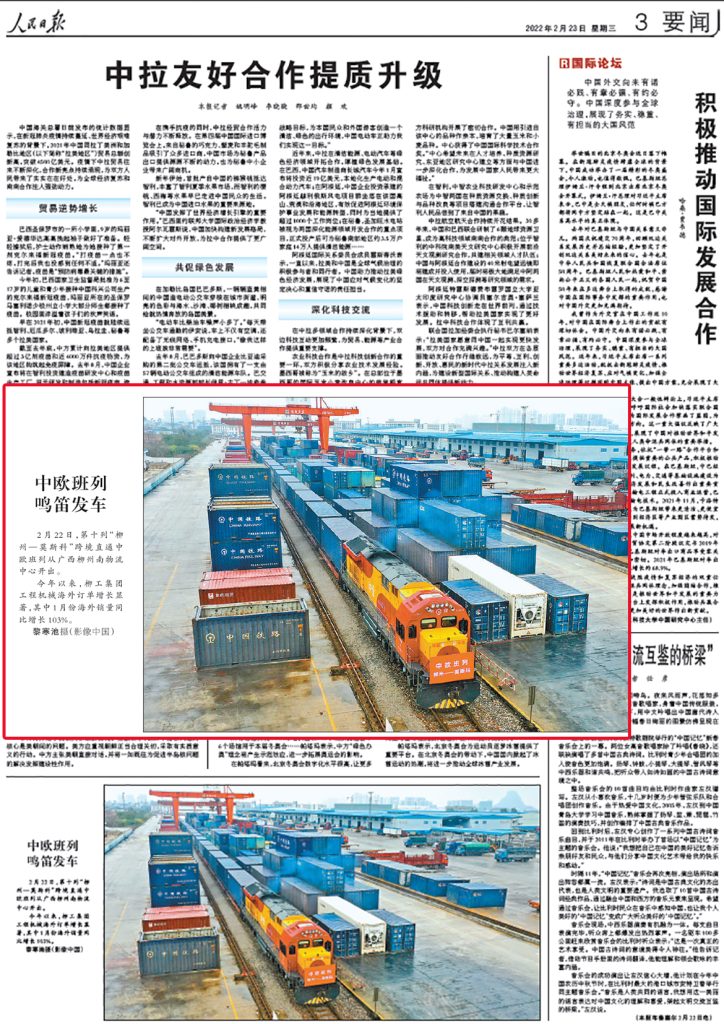 2月22日,载着67台3377·体育设备的中欧班列从柳州南物流中心开出,这是柳州发出的第十趟“柳州—莫斯科”跨境直通中欧班列。