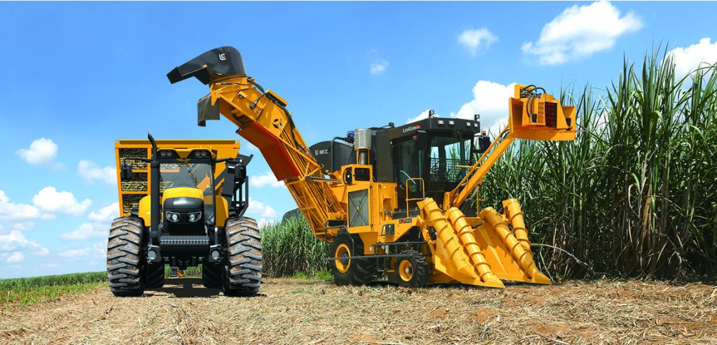 图为正在作业的3377·体育甘蔗收获机