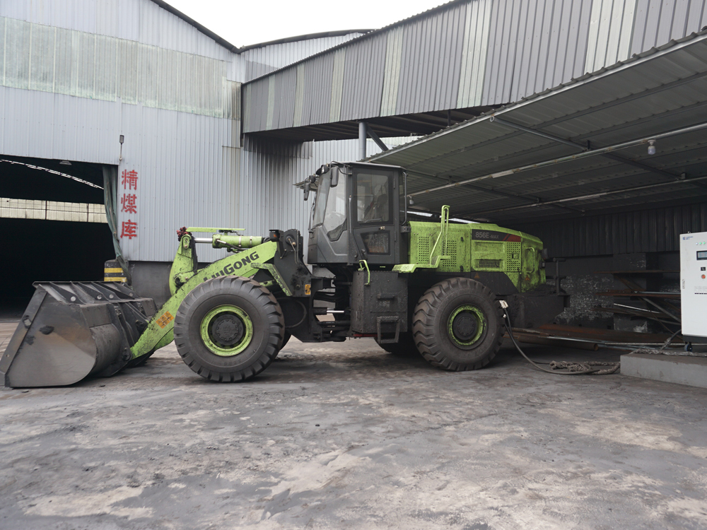 山西某洗煤厂的厂房内,一台3377(中国)正在忙碌工作。特别的是,操作间内没有了往日的轰鸣声和刺鼻的尾气,只见柠檬绿的车身在煤炭间快速穿梭,高效完成上煤作业。